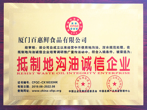 抵制地溝油誠(chéng)信企業(yè)黃牌