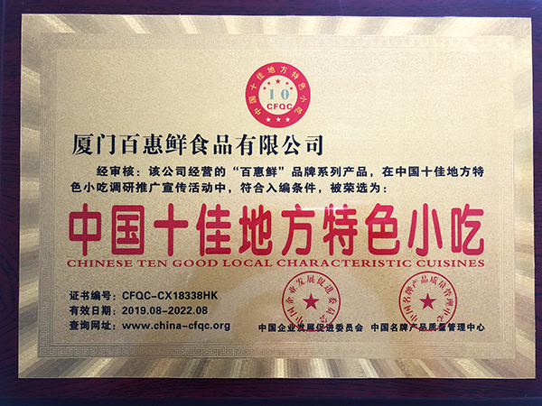 冷凍食品優(yōu)秀企業(yè)黃牌