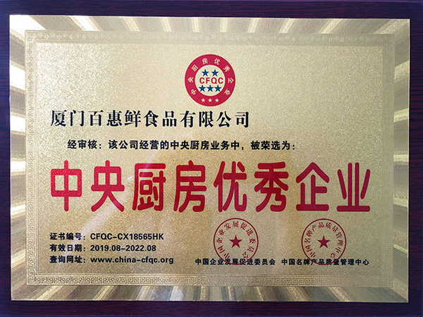 中央廚房?jī)?yōu)秀企業(yè)(黃牌)